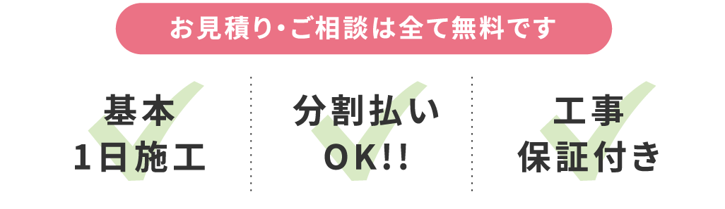 ただし、水まわり等の工事では、数日間キッチンやお風呂が使えなかったりという不便な面はでてきますので、仮設工事をするなど考慮しておく必要はあります。弊社のできる範囲は、協力出来るように努めます。